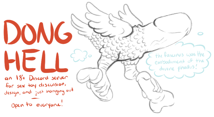 Join Dong Hell, an 18+ chat based around the discussion of sex toys, idea sharing, and a chill space where criticism isn’t the end of the world. It’s open to everyone (so long as they’re adults) and always accepting new people! Also, the icon is a Greek penis with wings that is also holding two other penises, so really, just witnessing that is a win.